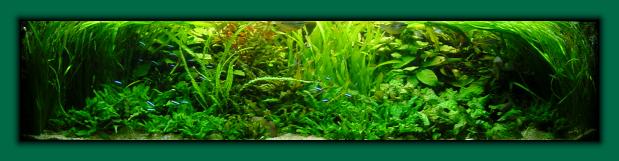 Hier haben wir einen Panoramablick in das Stollenwand-Aquarium. Links und rechts stehen Vallisnerien. Der Vordergrund wird von dicht gewachsenen Cryptocorynen beherrscht. Im rückwertigen Teil wachsen Anubias nana und Javafarn. Im mittleren Bereich kommen einige Schraubenvallisnerien und links davon ein Wasserfreundbastard zum Einsatz.