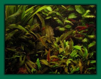 Hier ein Blick in den Cryptocorynen-Wald im kleinen Becken in der Küche. Er bietet hervorragenden Schutz für die Königscichliden und die Thomasi-Buntbarsche. Über diesem "Wald" tummeln sich gerne die Bitterlings- und Eilandbarben.