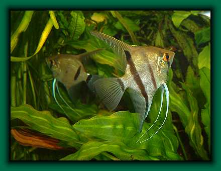 Noch einmal ein Blick auf die majestätischen Skalare, die vollkommen ruhig zwischen hochaufragenden Pflanzen zu stehen pflegen.